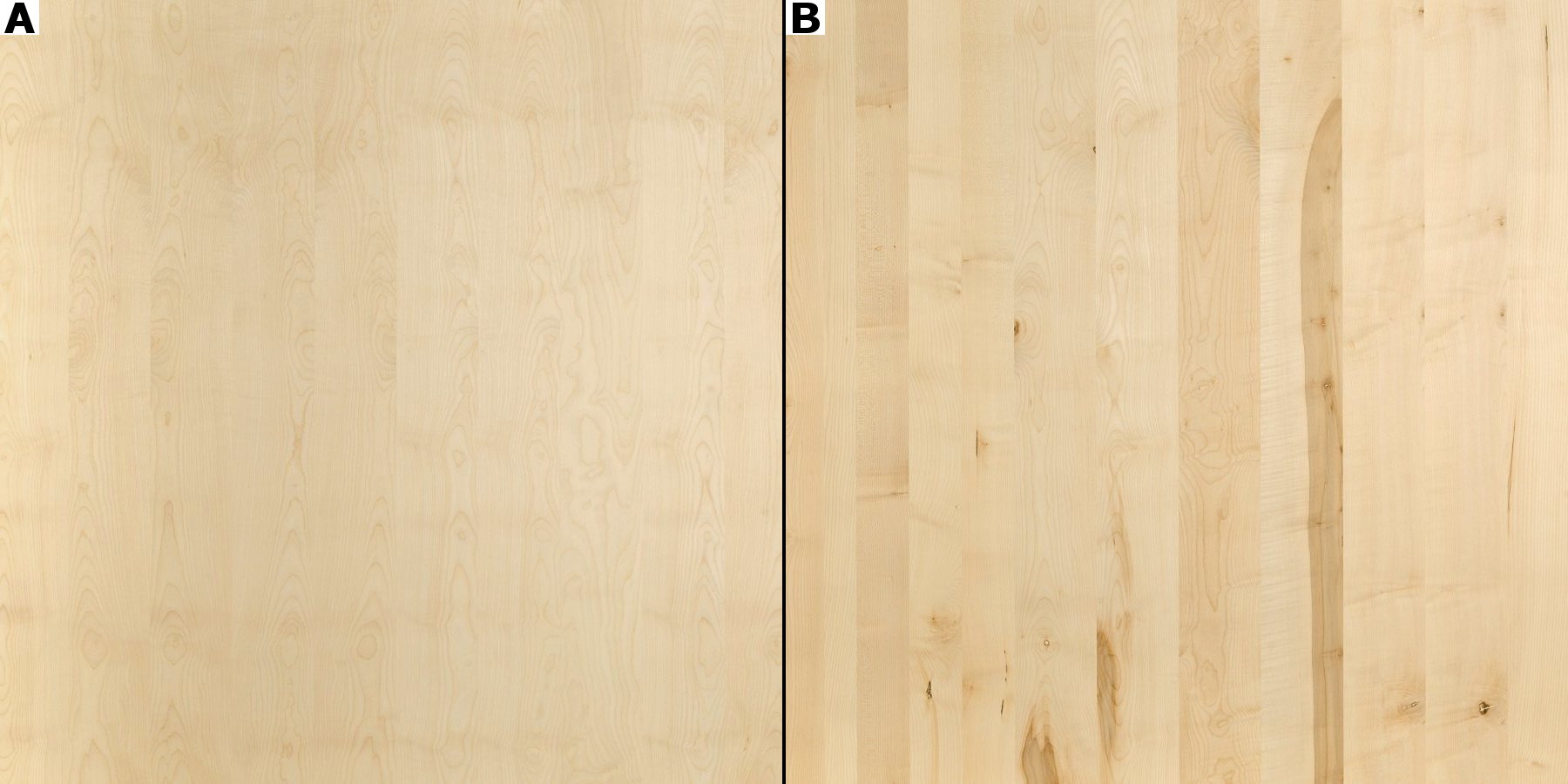 - Full length 5mm thick birch staves of random width (50-140mm wide) bonded to a cross-banded finger jointed core of the same species