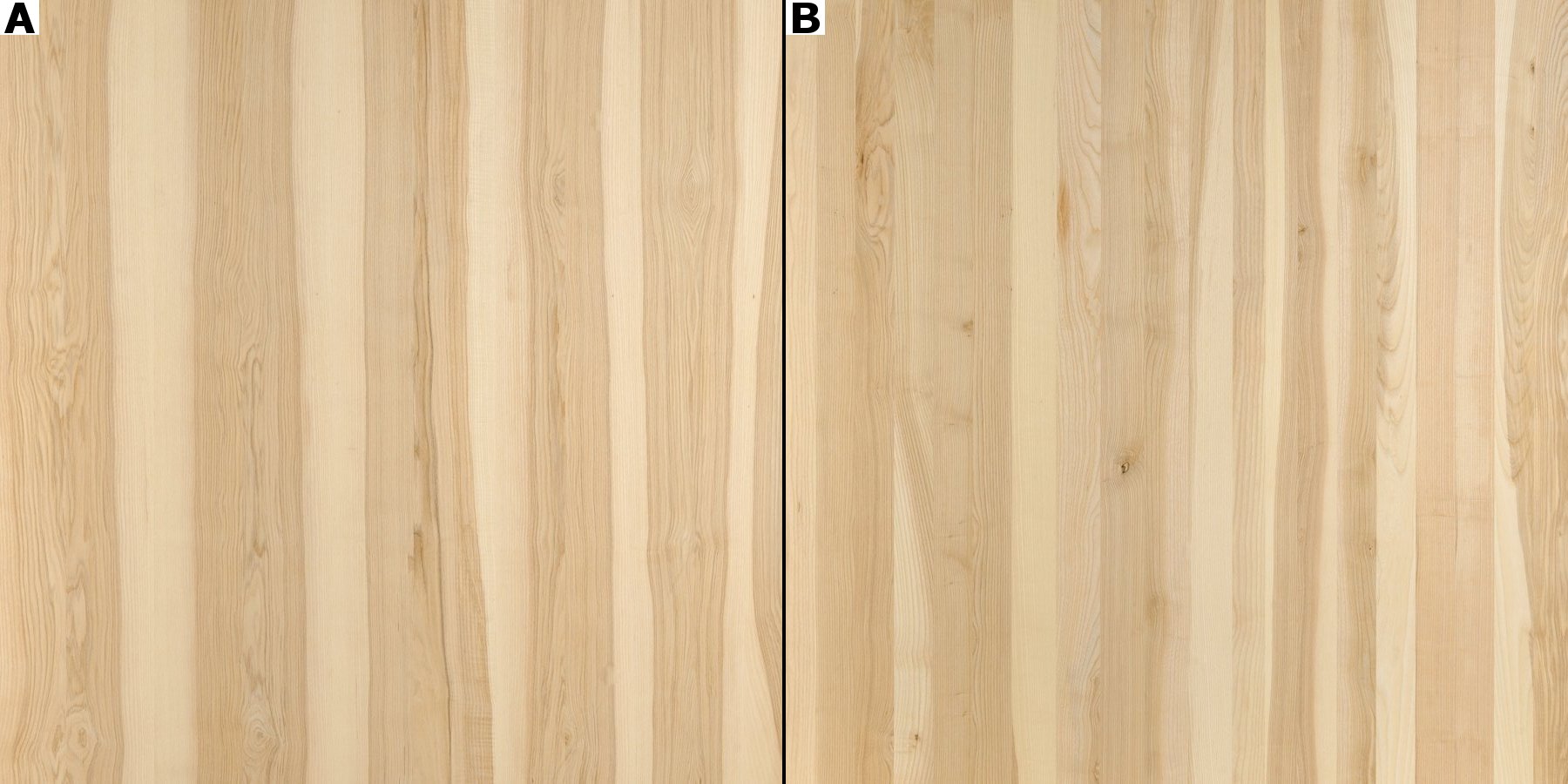 • Full length 5mm thick olive ash staves of random width (50-140mm wide) bonded to a cross-banded finger jointed olive ash core