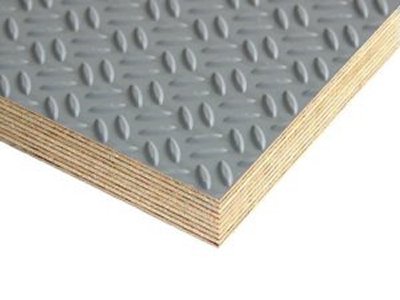 - Exterior birch plywood faced with a slip-resistant, patterned polyolefin coating that offers enhanced safety in the form of a resilient and water-proof anti-slip surface