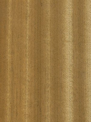 The grain of African Walnut veneer is generally interlocked, producing an attractive ribbon figure with alternating zones of darker and lighter colored wood tissue or a stripe figure on quartersawn surfaces, and texture is fine and uniform.