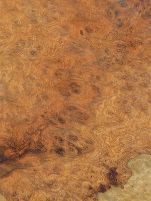 Amboyna Burr is created by abnormal growth, or excrescences, which are common to most trees. Irritation or injury forms an interwoven, contorted, or gnarly mass of dense woody tissue from which this veneer is harvested. The burrs from this tree are typically very small and expensive, and are therefore often used to create inlaid feature panels, rather than as full-sized sheets.
