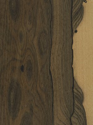 The beautiful, dark-grained grey-green, grey-brown or dark brown Ziricote heartwood is irregularly streaked with even darker markings, giving the wood the most beautifully wild swirly & smoky appearance, almost like a very dark marble. The heartwood is clearly demarcated from the sapwood, which is a light cream to light golden tan, and the pleasing ray figure in both heartwood and sapwood allow the option to use the sapwood within the design for a very striking overall effect, whereas it would probably normally be removed these days, much like has become the norm with the rosewoods.